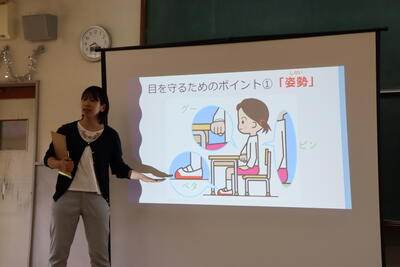 子ども達が「目を大切にする行動について」考える大事な時間になりました。月目標を意識しながら生活できるとよいです。