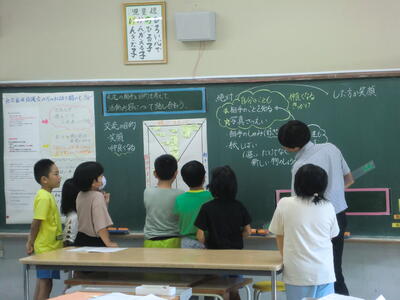 次に、地域住民の高齢者が交流する「まさのや」訪問計画(10月13日)について、話合いを行いました。子ども達は、交流を通して「高齢者と仲良くなりたい!」「高齢者を笑顔にさせたい!」という思いがあり、下記の通り活動内容を決めました。