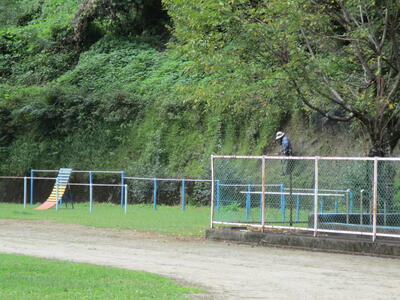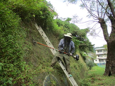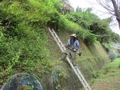生い茂った草を取り除く作業後、壁面が見違えるほどきれいになりました。