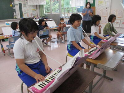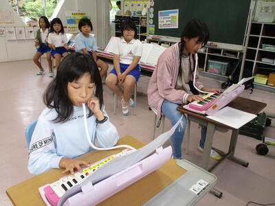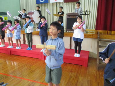 学校と地域をつなぐ音楽祭に向け、全校で合奏にも取り組んでいます。