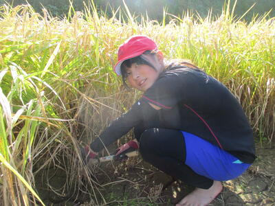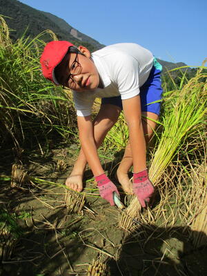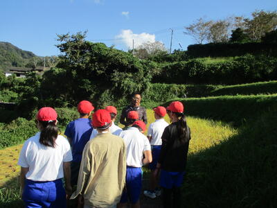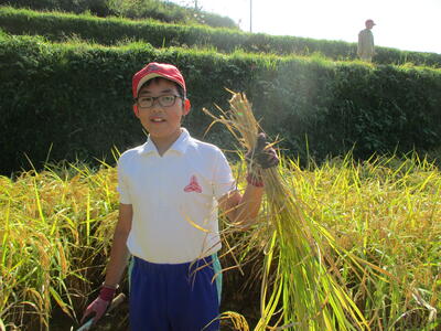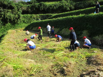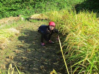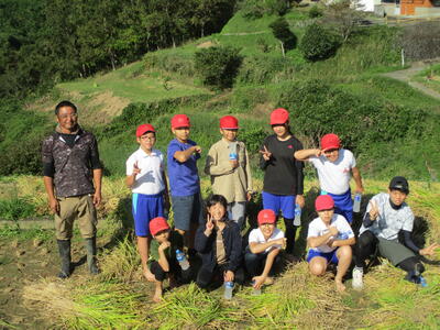 5,6年生9名のうち稲刈り初体験者は、たった1名。