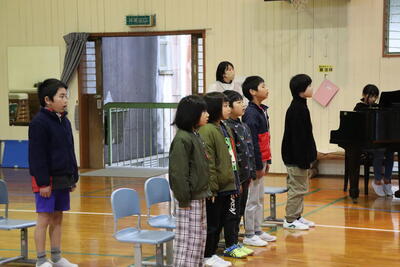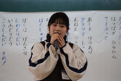 図書活動推進員の山本先生には、読み聞かせではなく、森山直太朗さんの「さくら」を歌ってもらいました。