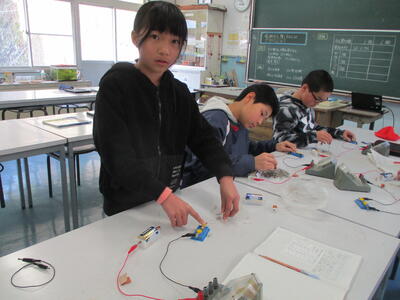 「電磁石を強くするには?」子ども達は、コイルの巻数を増やす!乾電池の数を増やす!と予想を立てました。