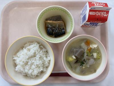 麦ごはん 豚汁 煮魚 こんにゃく 牛乳