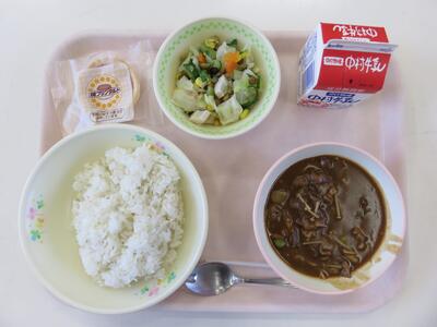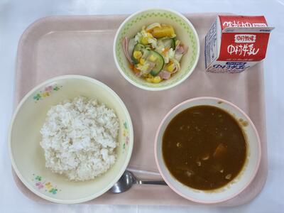 麦ごはん チキンカレー 日向夏サラダ 牛乳