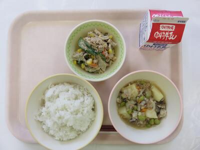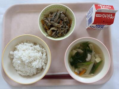 麦ごはん 吉野汁 いりこ入りみそきんぴら 牛乳