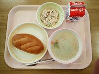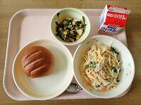 みなさん、手はきれいに洗いましたか?「寒いから」と言って指先だけさっと水で流すような手洗いはしていませんか?冬になるとノロウイルスなどが流行します。これは、原因となるウイルスが寒さや乾燥を好むためです。「ノロウイルス」に感染してしまうとおなかが痛くなったり、気分が悪くなります。ノロウイルスは、アルコールで消毒しても効きません。とにかく手洗いをしっかりして洗い流すしかありません。パンは手に持って食べるので、手をしっかり洗ってばい菌やウイルスを落として給食をいただきましょう。