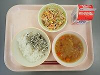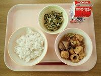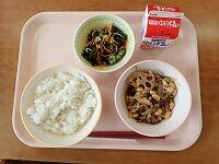 麦ごはん 牛乳 かいりかりいりこ じゃが芋のそぼろ煮 ごぼうサラダ
