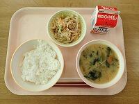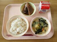 麦ごはん 牛乳 じゃがいものみそ汁 かぼちゃのそぼろ煮