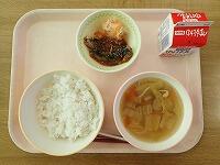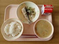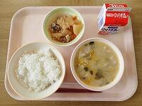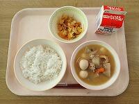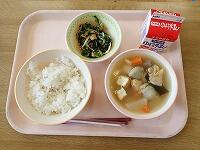 麦ごはん 牛乳 白玉だんご汁 いわしのおかか煮 そえ野菜