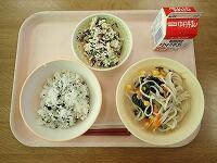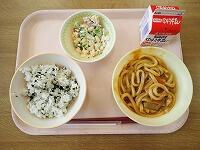 ゆかりごはん 牛乳 五目うどん ビーンズサラダ