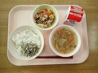 麦ごはん 牛乳 炒り豆腐 和風サラダ