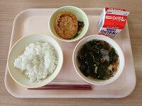 麦ごはん 牛乳 高野豆腐の卵とじ 梅肉和え