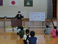 続いて、始業式では、校長先生が今年度、みんなに頑張ってほしいことを話されました。みんなの合い言葉はT(たのしく)・A(あかるく)・G(げんきよく)であることや、友だちへの言葉かけを大事すること、あいさつ日本一を目指すこと、勉強をがんばることなどです。