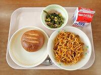 米粉パン 牛乳 ミートソーススパゲティ アスパラソテー