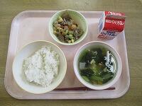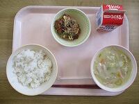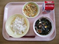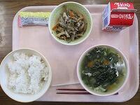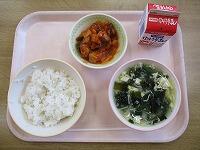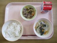 キムタクごはん 牛乳 チャプチェ わかめスープ