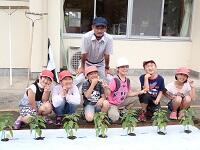6月2日(水)地域の方に御協力いただいて、3年生の花壇にパプリカの苗を植えました。これからの成長が楽しみです。