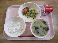 7月28日は土用の丑の日です。夏の「土用の丑の日」にうなぎを食べると、夏バテをしないといわれています。昔から丑の日に「う」のつくものを食べると体によいという言い伝えがありました。今日はウナギのかば焼きではありませんが、いわしのかば焼きにしました。モリモリ食べて夏バテを予防しましょう。今日は大豆をつぶして作った呉汁とデザートでアイスもありました!今日で1学期が終わりますが、夏休みも早寝、早起き、朝大豆を心がけて元気に過ごしましょう。