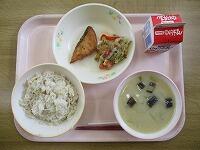 麦ごはん 牛乳 大豆の磯煮 のっぺい汁