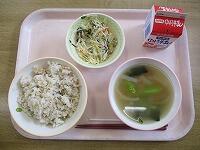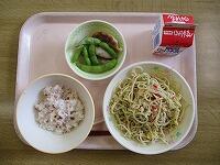 枝豆ごはん 牛乳 高菜ビーフン 五目スープ