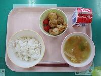 麦ごはん 牛乳 鶏肉のレモン煮 ミニトマト レタスと卵のスープ