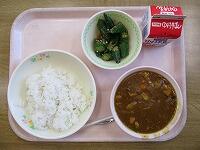 夏野菜カレーライス 牛乳 オクラのごま和え