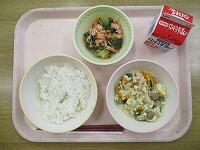 麦ごはん 牛乳 卵とじ もやしのごま酢和え 味付けのり