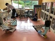 7月27日(火)職員作業で給食室の整理と遊具のペンキ塗りを行いました。中庭にあるジャングルジムと滑り台がきれいになりました。
