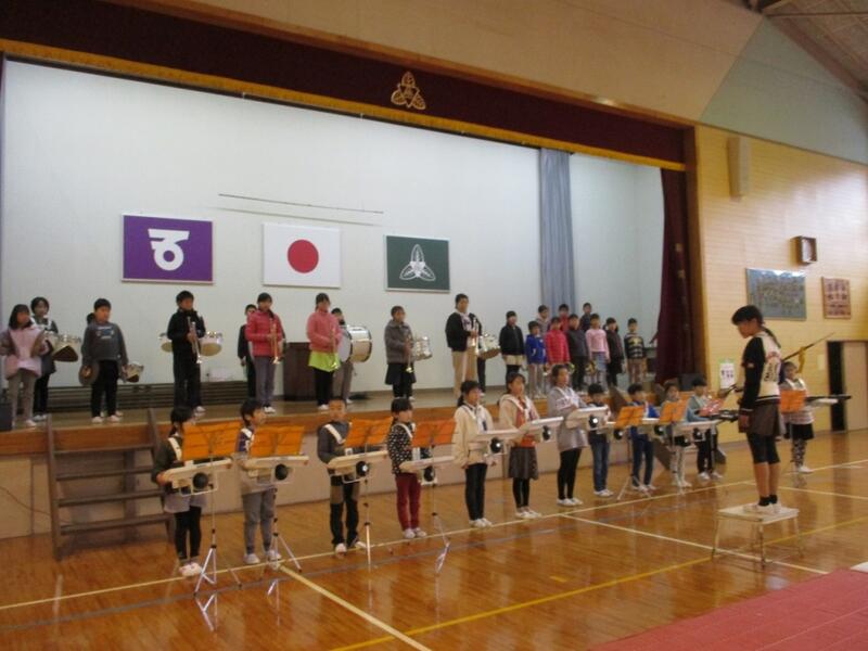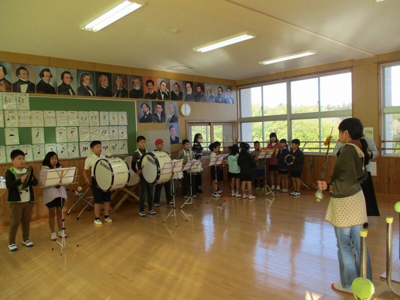 4月9日(木)本年度の鼓笛練習開始に合わせて、新しく鞍岡小へ来られた先生方へ鼓笛の演奏を聴いていただきました。みなさんとても驚き、感動されていました。