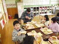 11月14日(木)お世話になっている方々をお招きしてのわくわくランチを行いました。この日は民生委員の方2名とおたすけ隊の方1名をお招きして、楽しい給食の時間を過ごしました。