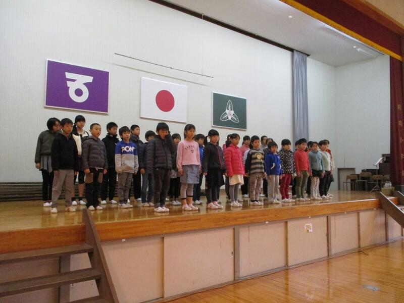 10月28日(月) 昨日、町福祉センターで、標記の会が行われました。本校から、1年生を除く、32名全員が参加しました。室内で練習をしているときから、多くの方が子どもたちの演奏の様子を見に来られました。