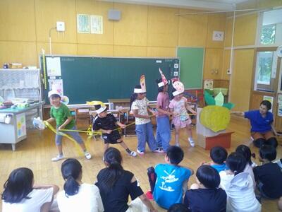 7月9日(水)昼休みに1年生が「大きなかぶ」を劇で発表しました。放送で呼びかけたところ、多くの子どもたちや先生方が観覧してくれました。とっても元気のよい劇で、観覧者からたくさんの拍手をもらいました。