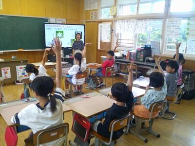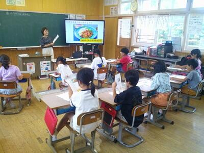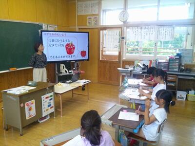 7月11日(金)3・4年生の総合的な学習の時間に、町内の栄養教諭の先生をお招きして「パプリカの栄養」について学習しました。学習の最後には、パプリカを使った料理も教えていただきました。