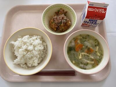 麦ごはん スタミナ汁 たこ焼き揚げ 牛乳