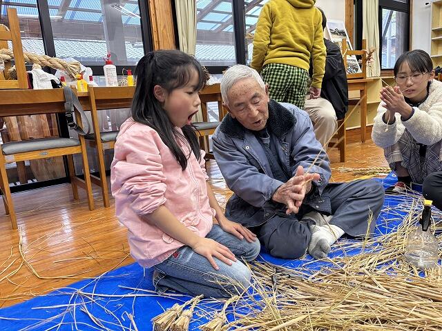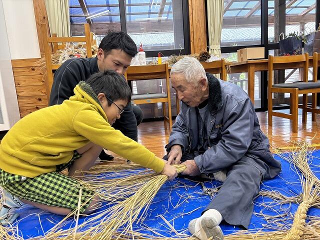 初めてつくるという子どもたちがほとんどでしたが、地域の方々がとても丁寧に教えててくださり、また、うまくできないときはコツを伝えながら一緒に作ってくださったおかげで、クリスマスリースもしめ縄も作ることができました。