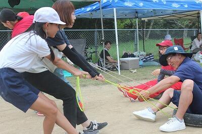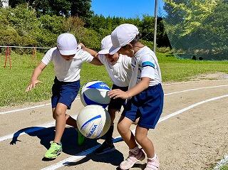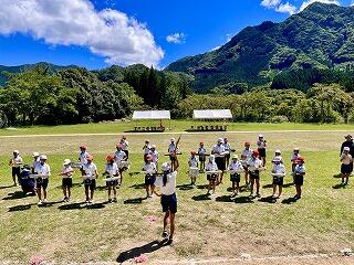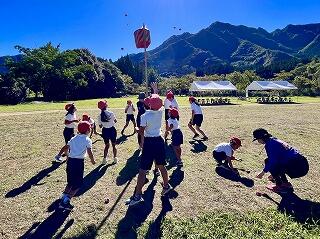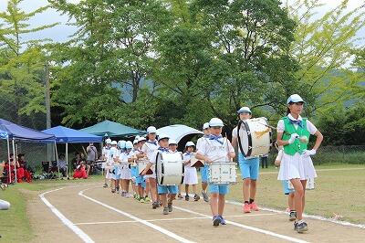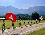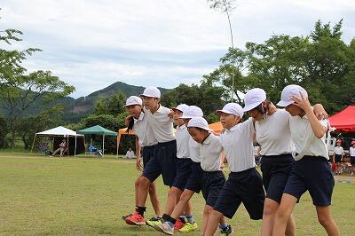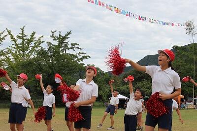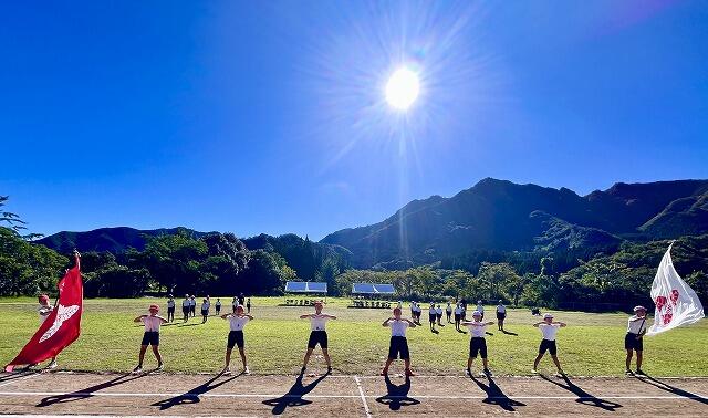 9月13日、祇園山に見守られながら、運動会予行練習を行いました。
