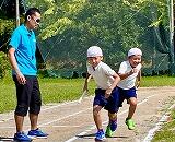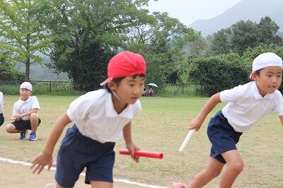 鞍岡小学校の運動会で行われる「全員リレー」は、1年生から6年生までが1つのバトンをつなぎ、全体練習で作った記録「8分32秒75」の記録に挑みます。鞍小31人の子どもたちが心1つにして、より短いタイムでゴールできるよう期待します。