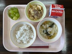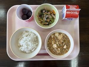 麦ごはん マーボー豆腐 中華サラダ ぶどう 牛乳