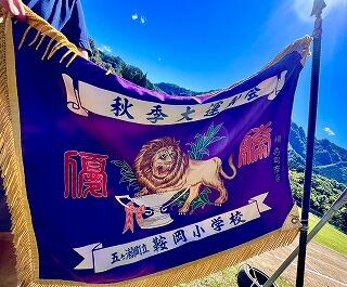 赤団、青団ともに金獅子の描かれた優勝旗をめざし、がんばります。応援よろしくお願いします。