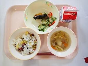 萩ご飯 月菜汁 さんまの甘露煮 即席漬け 牛乳