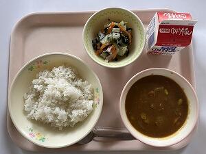 麦ごはん チキントマトカレー 海藻サラダ 牛乳