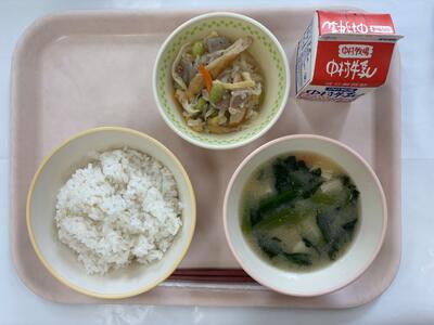 麦ごはん タラとほうれん草のみそ汁 千切り大根の炒め煮 牛乳