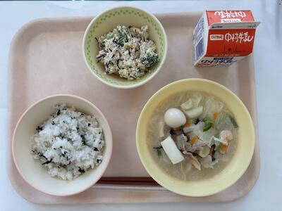 減量わかめご飯 ちゃんぽん ひじきの洋風白和え 牛乳
