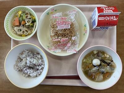 減量わかめごはん 焼きそば フルーツヨーグルト