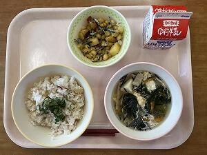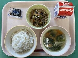 麦ごはん 吉野汁 いりこ入りのみそきんぴら 給食のり