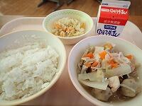 麦ごはん 牛乳 たらとほうれん草のみそ汁 千切り大根の炒め煮