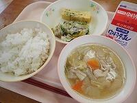 麦ごはん 牛乳 豆腐だんご汁 千草焼き ゆかり和え