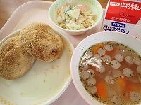今日は、待ちに待った揚げパンでした。小学校1年生は初めて食べると思います。お味はいかがですか?みんな大好きなパンなので、家でもつくれるようにレシピを紹介します。パンは、コッペパンならふわっと、米粉パンならもちもちした食感になります。どちらでも美味しいです。170~180度くらいの油で色がかわるまでサッと揚げます。揚げたてのパンに、きなこ・さとう・塩を混ぜた粉をつけてできあがりです。興味のある人は冬休みに作ってみてください。