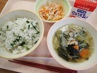 減量わかめごはん 牛乳 神楽うどん 納豆サラダ