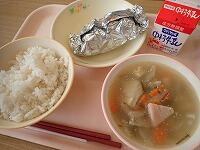 麦ごはん 牛乳 根菜ごま汁 魚ときのこのホイル焼き